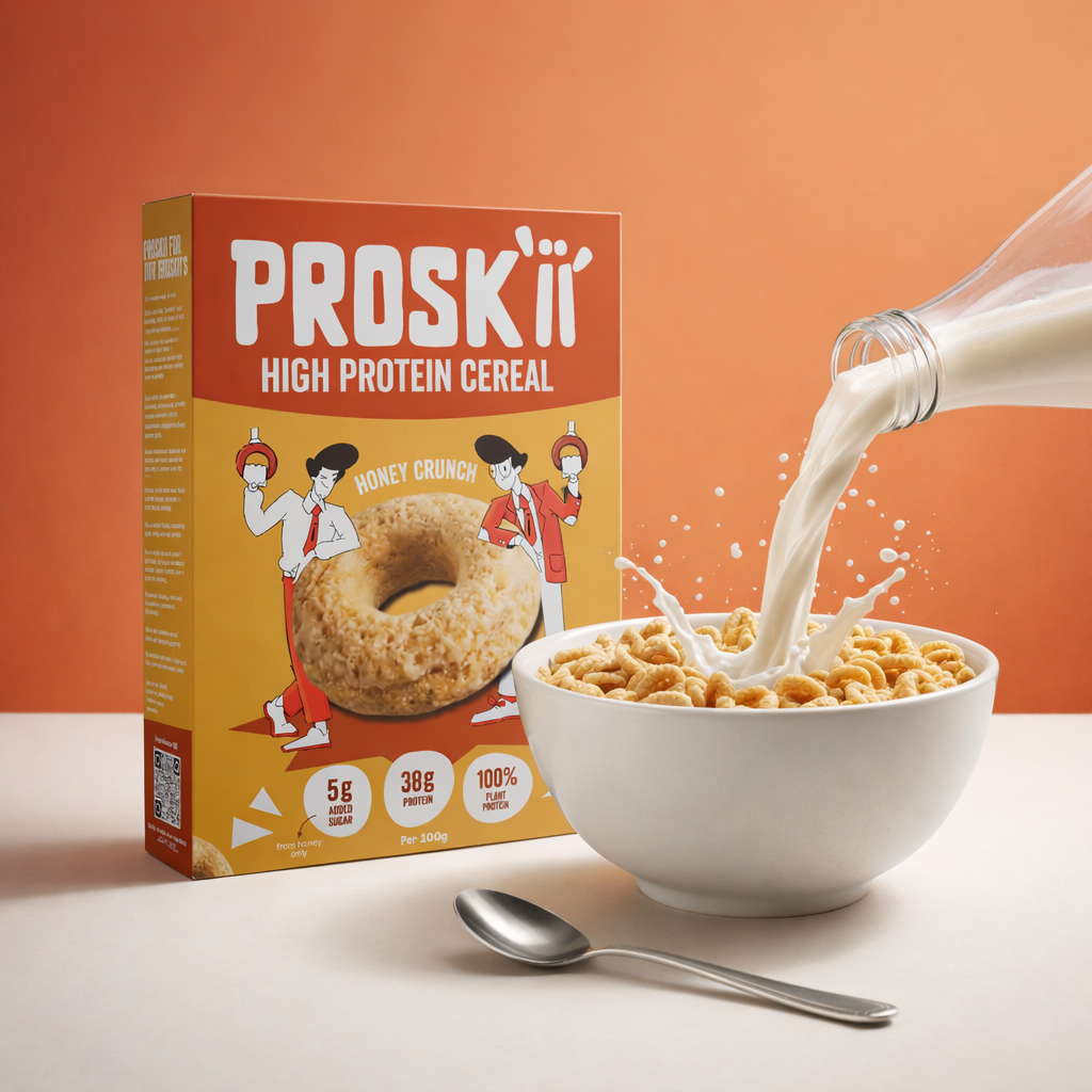 Proskii gives you ~15 g protein per bowl with 0 g added sugar (without milk).
