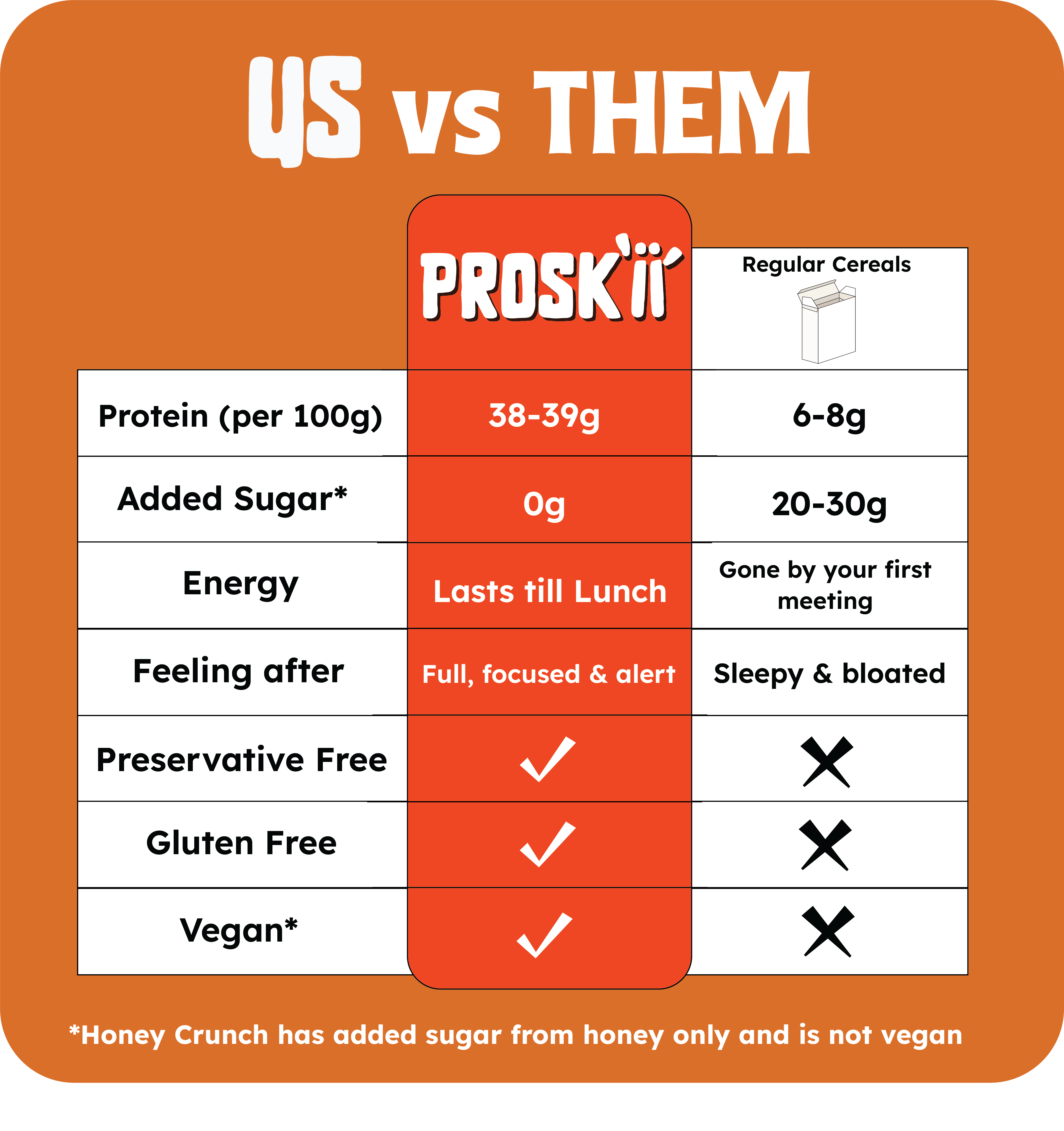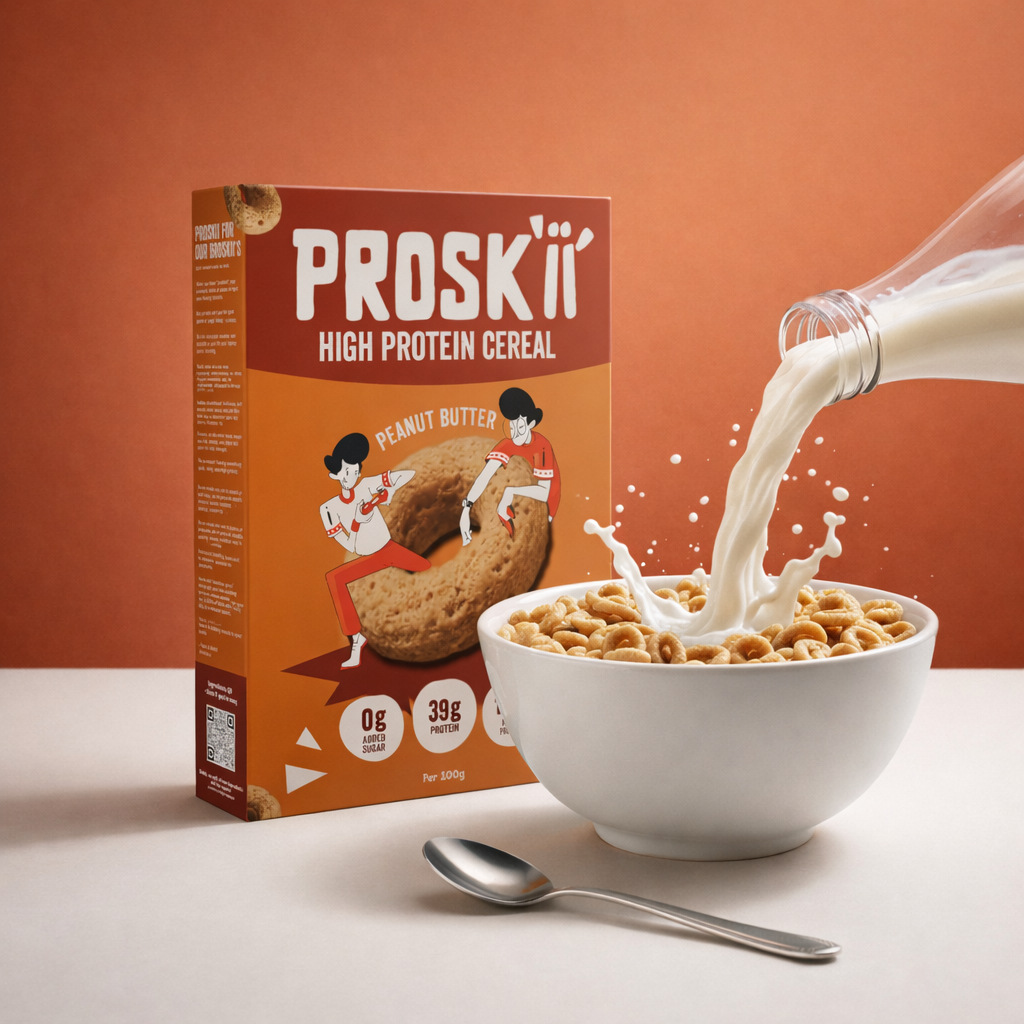 Proskii gives you ~15 g protein per bowl with 0 g added sugar (without milk).